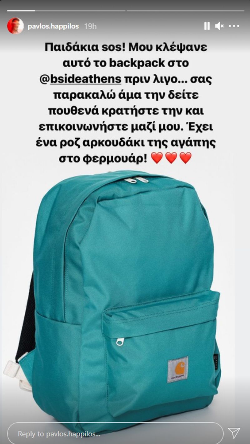 Ο λόγος για τον Παύλο Χάππιλο, την πιο συμπαθητική φιγούρα του φετινού Masterchef, ο οποίος μέσα από το προφίλ του στο Instagram έκανε γνωστό ότι άγνωστοι του έκλεψαν μια τσάντα η οποία είχε μέσα αρκετά προσωπικά αντικείμενα.