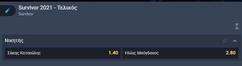 Συγκεκριμένα, στη Stoiximan μπορεί κανείς να ποντάρει live για το ποιος θεωρεί ότι θα είναι ο νικητής. Οι αποδόσεις που δίνονται για την ώρα, δείχνουν πως ο μεγάλος νικητής θα είναι ο Σάκης Κατσούλης!