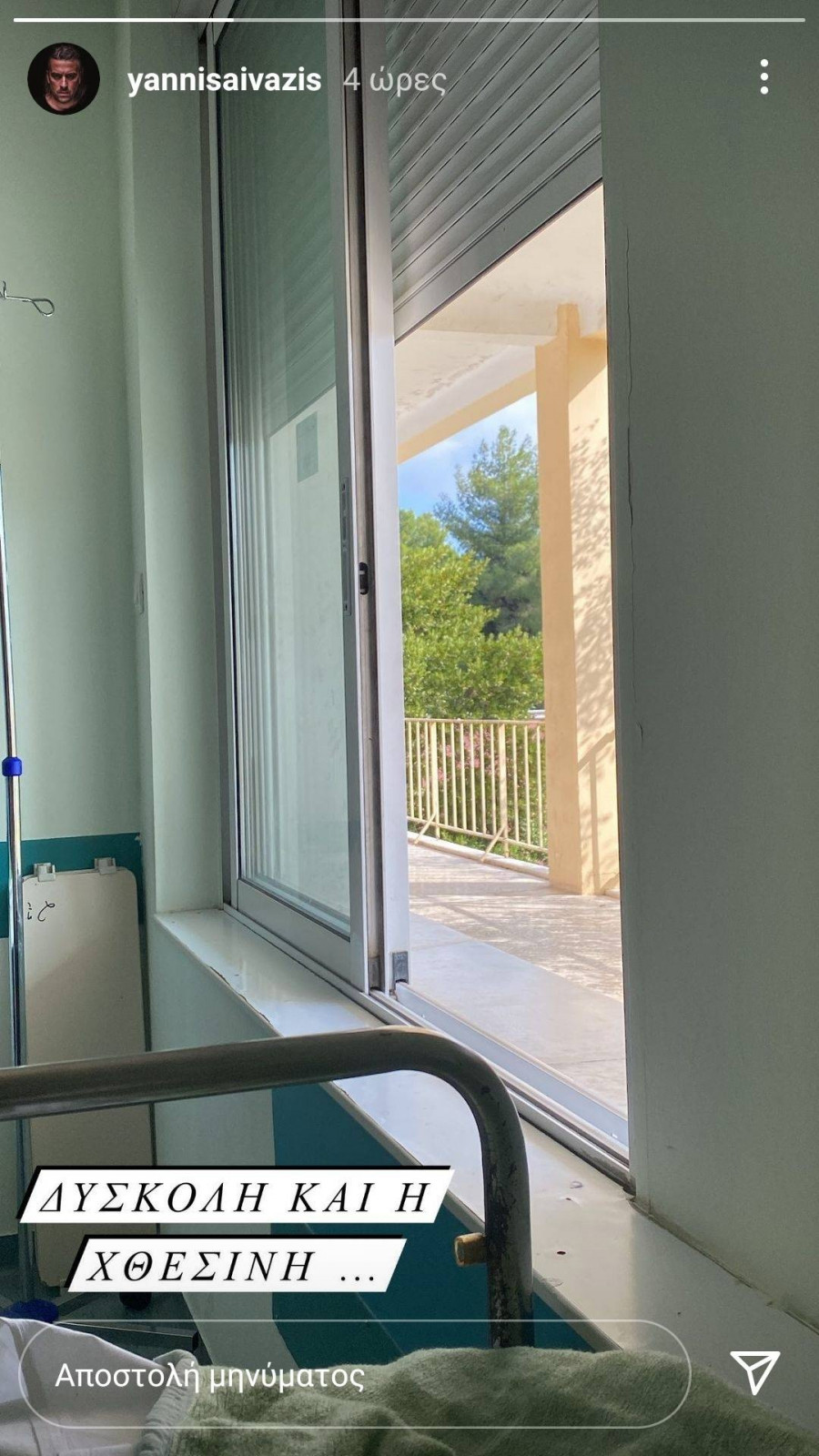 Ο ηθοποιός είναι καταβεβλημένος, ωστόσο θέλησε ενημερώσει τους διαδικτυακούς του φίλους για την κατάσταση της υγείας του. Ο Γιάννης Αϊβάζης ανέβασε στο Instagram μία φωτογραφία από το κρεβάτι του νοσοκομείου “Σωτηρία” και έγραψε: «Δύσκολη και η χθεσινή…».