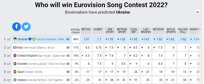 Τα polls δίνουν την Ουκρανία στην πρώτη θέση.