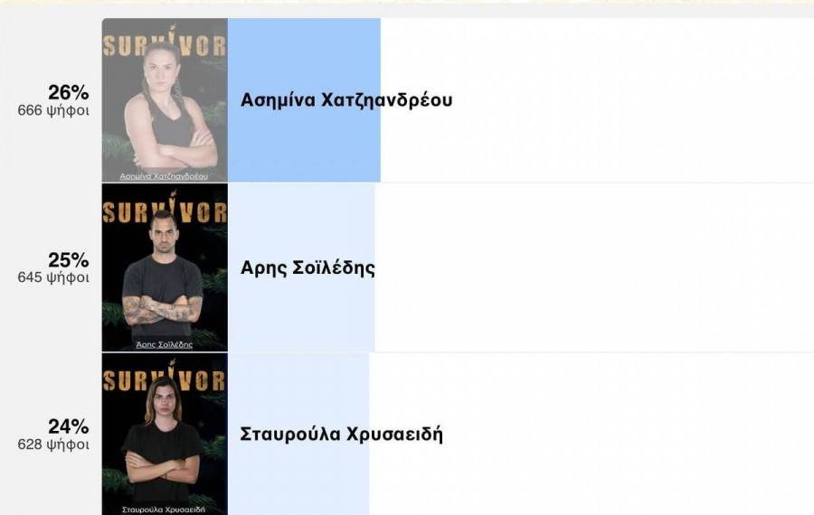 Το ριάλιτι επιβίωσης σιγά – σιγά οδεύει προς το τέλος του και σε λίγες μέρες αναμένεται να γίνει ατομικό, όπως κάθε χρόνο. Και αν στο μυαλό σας υπάρχει ξεκάθαρο φαβορί, οι fans του παιχνιδιού και πιο συγκεκριμένα οι χρήστες του διαδικτύου δεν ξεχωρίζουν ούτε ένας, ούτε δύο, αλλά τρεις παίκτες και μάλιστα με οριακή διαφορά.