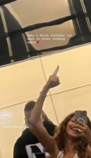 Ενώ σε άλλη φωτογραφία έγραψε: «Τα πρώτα ράμματα του μωρού, γέλια. Δεν πρόκειται να μαγειρέψω ποτέ ξανά».