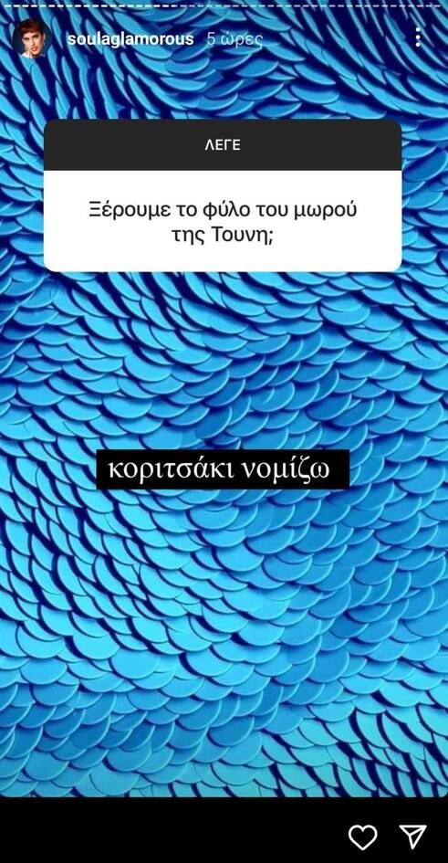 Η διαδικτυακή περσόνα του Instagram, Soula Glamorous, αποκάλυψε το φύλο του μωρού που περιμένει η Ιωάννα Τούνη.