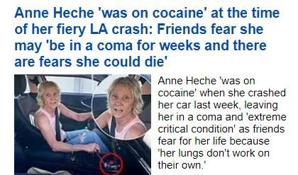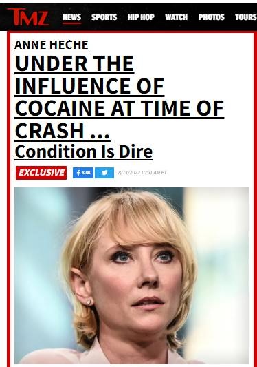 Σύμφωνα με το TMZ η ηθοποιός ήταν υπό την επήρεια κοκαΐνης, αλλά όχι αλκοόλ, όταν είχε το ατύχημα με το αυτοκίνητο στο οποίο τραυματίστηκε βαρύτατα, έδειξαν οι πρώτες εξετάσεις.