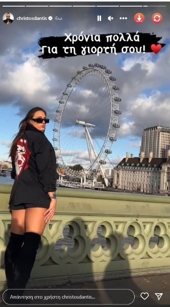 Μάλιστα, ο Χρήστος Δάντης ευχήθηκε δημόσια μέσα από τα social media στην αγαπημένη του για την ονομαστική της εορτή. Ο Χρήστος Δάντης κοινοποίησε μια φωτογραφία της Ασημίνας, που τραβήχτηκε στο Λονδίνο και έγραψε: «Χρόνια πολλά για τη γιορτή σου»