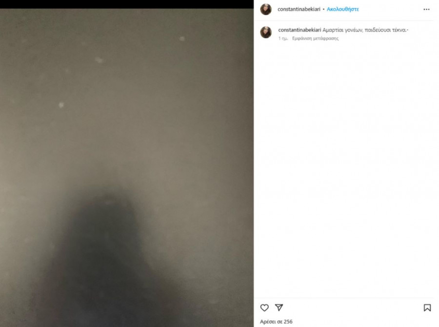 Μια φωτογραφία με μία σκιά και την ατάκα «Αμαρτίαι γονέων, παιδεύουσι τέκνα» ανήρτησε η πρώην σύζυγος του Βασίλη Μπισμπίκη Κωνσταντίνα Μπεκιάρη.