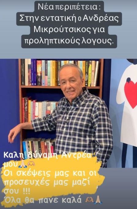 Στην εντατική ο Ανδρέας Μικρούτσικος. Τι είπε για την υγεία του η Κατερίνα Καινούργιου - Βαρύ το κλίμα και στην εκπομπή της Σταματίνας Τσιμτσιλή.