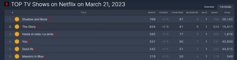 Λίγες ώρες μετά ανέβηκε στην 6η θέση δείχνοντας την δυναμική που έχει στο κοινό. Ένα επίσης σημαντικό στοιχείο είναι ότι η σειρά μπήκε και στο τοπ 10 των ΗΠΑ!