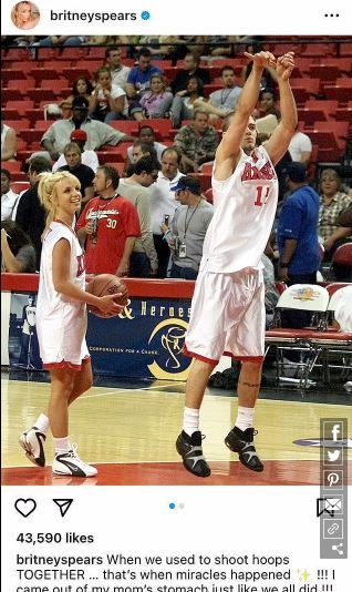 Η τραγουδίστρια μοιράστηκε ένα slideshow με φωτογραφίες της ίδιας και του πρώην φίλου της σε έναν αγώνα μπάσκετ διασημοτήτων το 2001. Κατά τη διάρκεια της φιλανθρωπικής εκδήλωσης, που έλαβε χώρα στο Thomas & Mack Center στο Λας Βέγκας της Νεβάδα, η σταρ φορούσε μια λευκή αθλητική φανέλα και ένα φαρδύ σορτς.