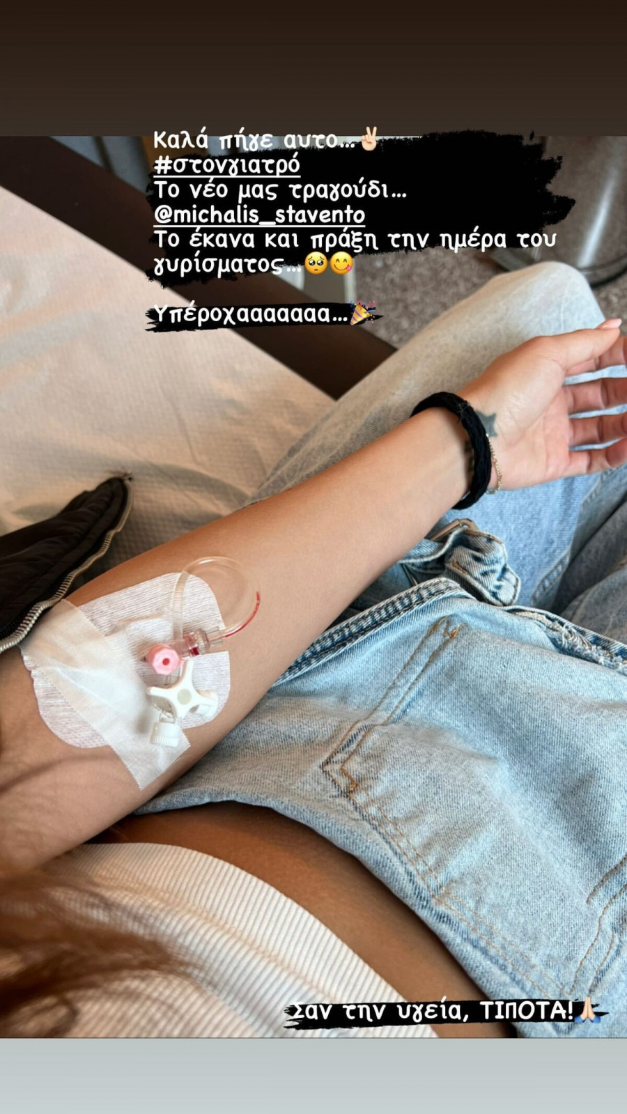 «Καλά πήγε αυτό…#στονγιατρό. Το νέο μας τραγούδι με Μιχάλη Κουϊνέλη. Το έκανα και πράξη την ημέρα του γυρίσματος. Υπέροχααα. Σαν την υγεία, τίποτα», έγραψε η Ήβη Αδάμου στο Instagram story.