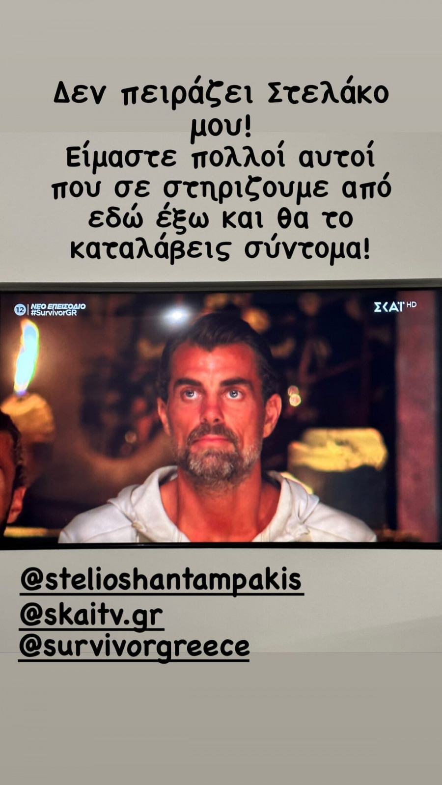 «Δεν πειράζει Στελάκο μου. Είμαστε πολλοί αυτοί που σε στηρίζουμε από εδώ έξω και θα το καταλάβεις σύντομα» έγραψε η σύζυγος του Στέλιου Χανταμπάκη.