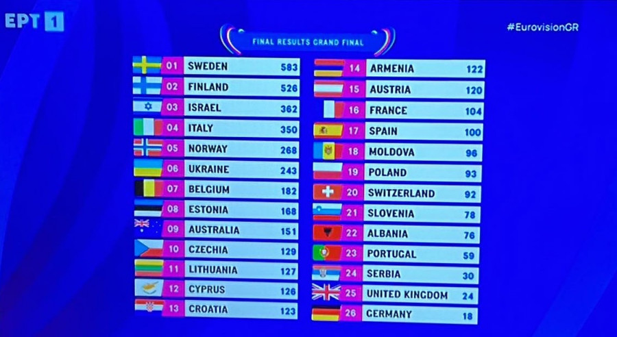 Eurovision: Μεγάλη νικήτρια η Σουηδία – H Loreen σηκώνει για δεύτερη φορά την «κούπα»
