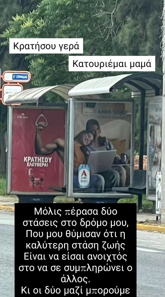 Ο Πάνος Μουζουράκης ωστόσο επέστρεψε στο Instagram και ανέβασε ένα στόρι από δύο στάσεις λεωφορείων σε δρόμο της Αθήνας.
