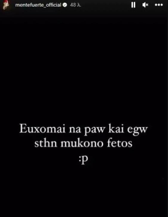 Ο Mente ο οποίος είναι γνωστό ότι έχει σχέση με την ηθοποιό Μαρία Σολωμού σχολίασε τη φημολογούμενη σχέση σε στόρι του στο Instagram. «Εύχομαι να πάω κι εγώ στη Μύκονο φέτος», έγραψε.