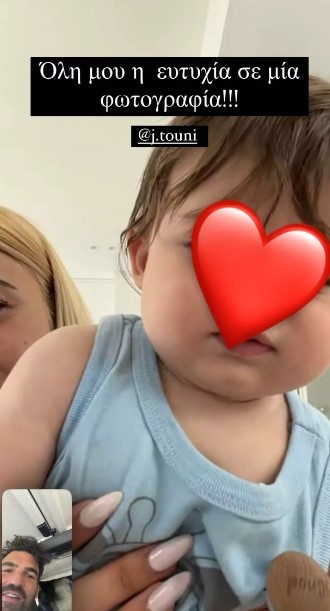 Έτσι το πρωί της Παρασκευής, σε μια από τις συχνές βιντεοκλήσεις τους, ο παρουσιαστής ανέβασε μια φωτογραφία σε story του στο Instagram γράφοντας: «Όλη η ευτυχία μου σε μια φωτογραφία».