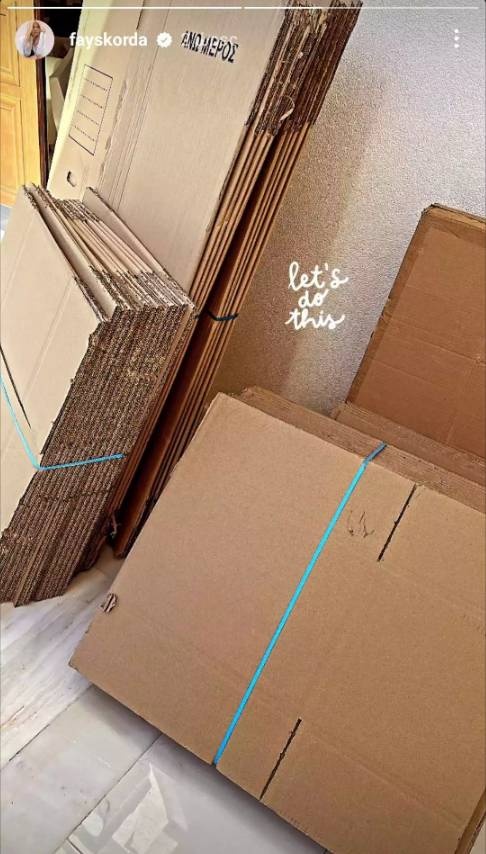Η Φαίη Σκορδά δημοσίευσε μια φωτογραφία στα Instagram Stories της με χάρτινες κούτες, γράφοντας «Let’s do this!».