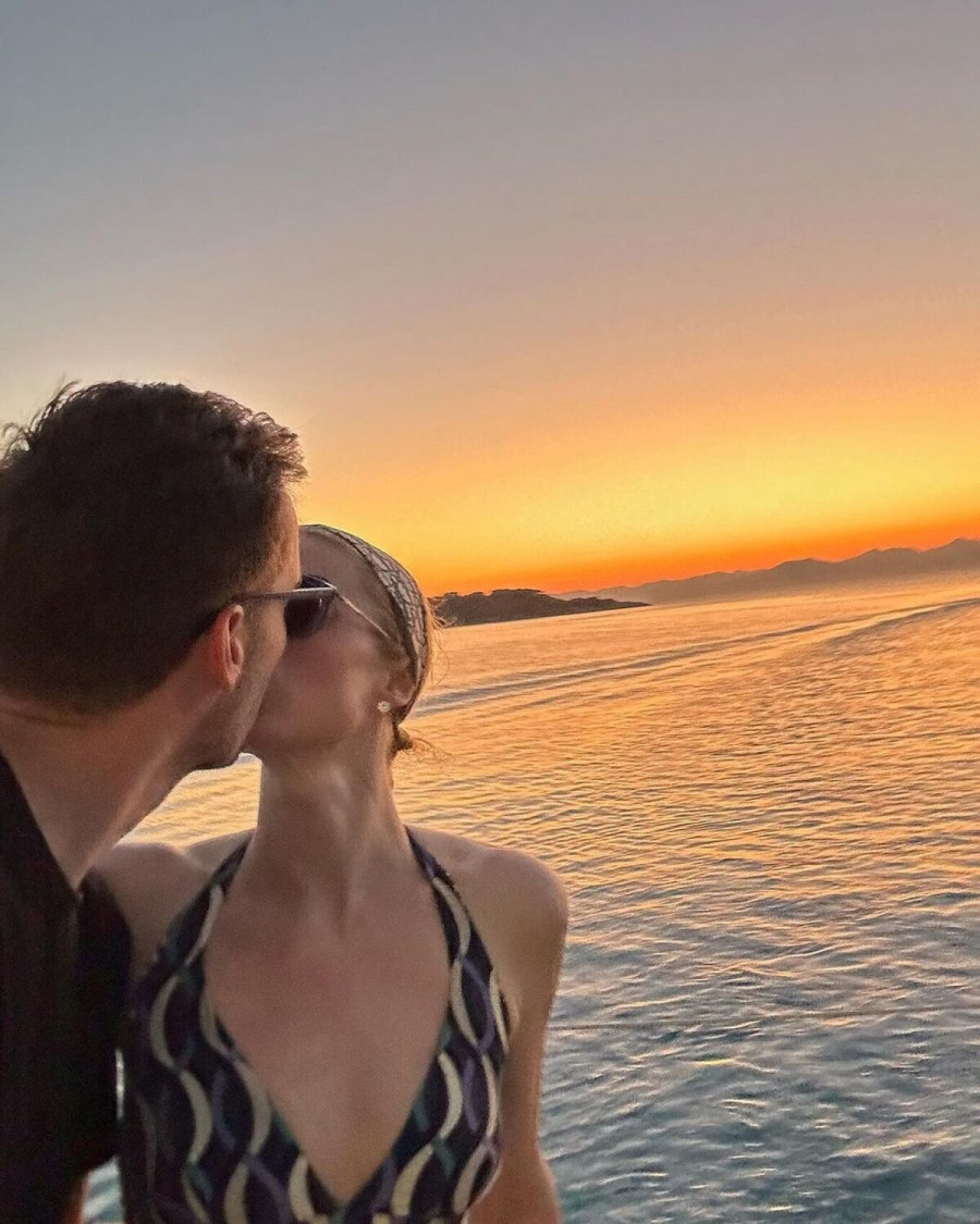 Σε ένα από αυτά, ανταλλάσσει ένα φιλί με τον σύζυγό της, Κάρτερ Ριμ. Στις υπόλοιπες εικόνες, απαθανατίζεται η ίδια να χοροπηδά στο σκάφος, χαμογελαστή.
