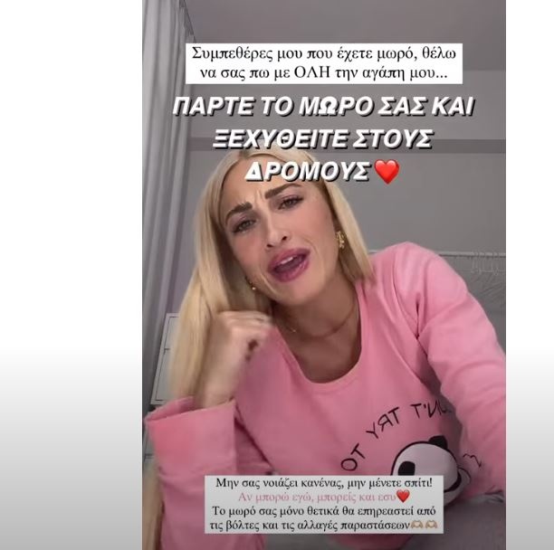 «Ήθελα να πω από την καρδιά μου στις μαμάδες που με ακολουθούν και μου λένε “μπράβο που βγαίνεις έξω με το παιδί”. Θέλω και εσείς να το κάνετε. Δεν θέλω καμία μαμά να νιώθει ενοχικά και να κλείνετε σπίτι για κάποιο λόγο με το παιδί της και να σκέφτεται ότι μπορεί να κλάψει και να ενοχλήσει τους τριγύρω. Είναι μωρά και μπορούν να κλάψουν και να κάνουν διάφορα απρόβλεπτα, αλλά that’s life.