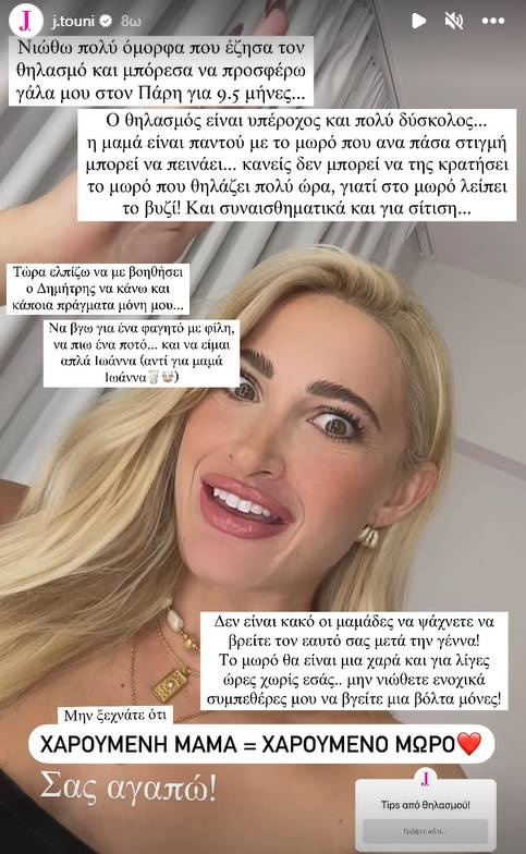 Ιωάννα Τούνη: «Νιώθω πολύ όμορφα που έζησα τον θηλασμό» - Η συμβουλή που δίνει στις νέες μανούλες