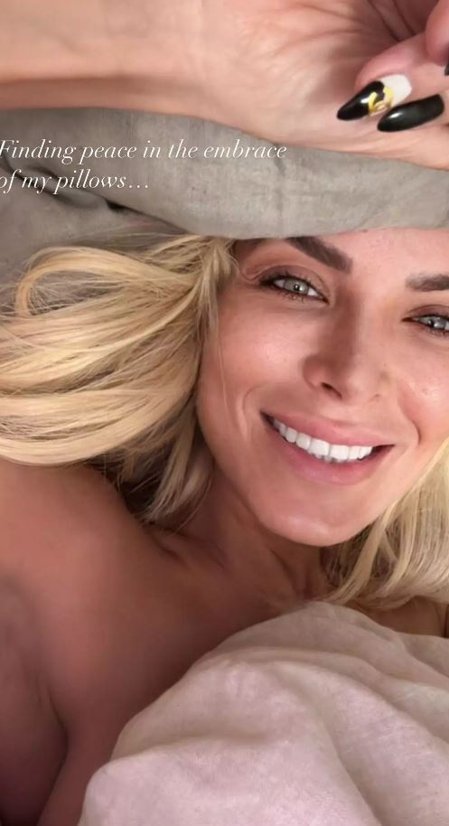 «Ψάχνοντας ηρεμία μέσα στα μαξιλάρια μου», γράφει η Κατερίνα Καινούργιου στα Instagram Stories της.
