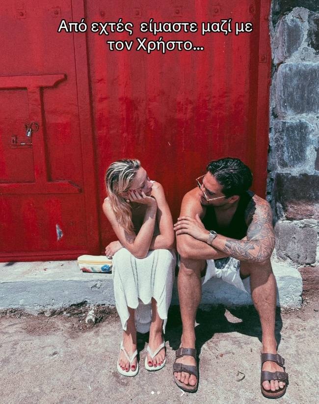 Το μοντέλο ανέβασε δύο φωτογραφίες. Στην πρώτη είναι από τις καλοκαιρινές διακοπές του ζευγαριού, γράφοντας «Από εχθές είμαστε μαζί με τον Χρήστο».