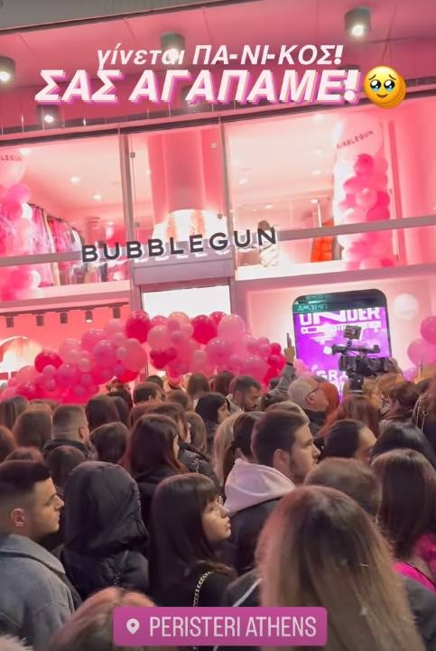 Εγκαίνια για το Bubblegun το κατάστημα γυναικείων ρούχων της Ιωάννας Τούνη και της Στέλλας Πάσαρη, στο Περιστέρι, το πρώτο του μαγαζί στην Αθήνα.