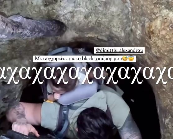 Η Ιωάννα Τούνη το απόγευμα της Τρίτης 2/1 δημοσίευσε ένα story στον προσωπικό της λογαριασμό στο Instagram, στο οποίο βλέπουμε τον Δημήτρη Αλεξάνδρου να κατεβαίνει μια σκάλα μέσα σε μια στενή σπηλιά, έχοντας στην πλάτη τον γιο τους.