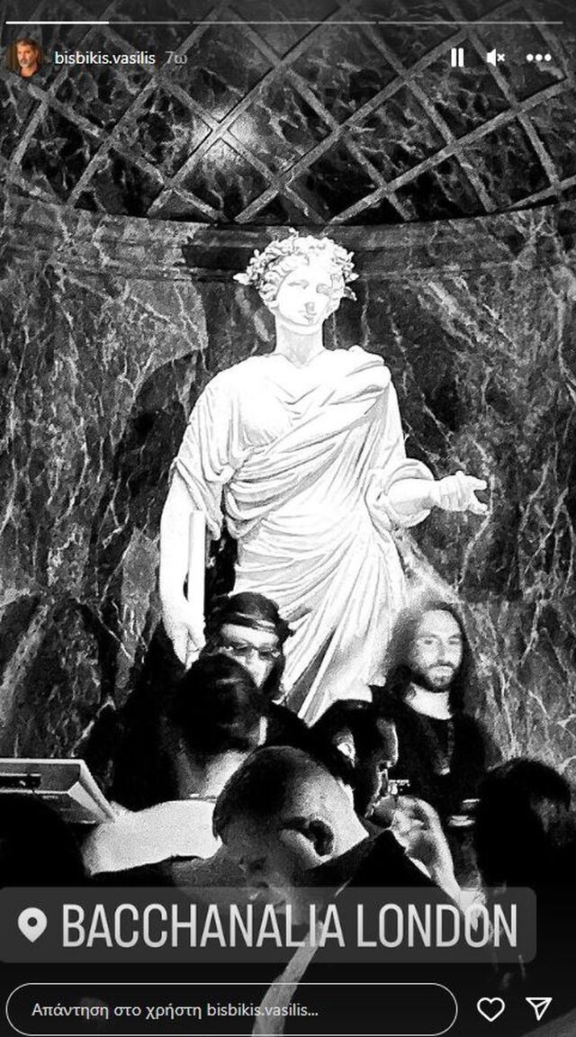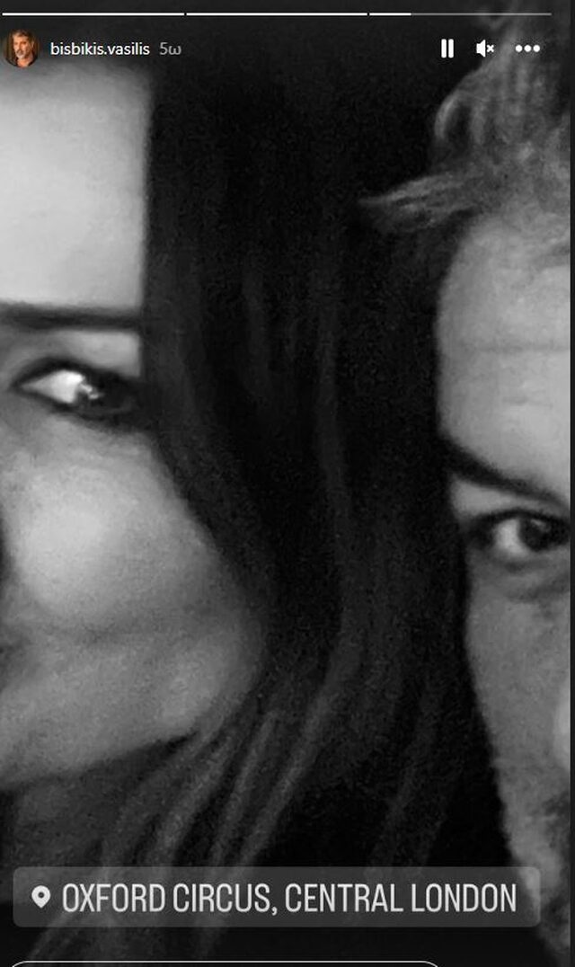 Ο ηθοποιός δημοσίευσε ένα κοινό στιγμιότυπο με την τραγουδίστρια. Το ζευγάρι φωτογραφήθηκε αγκαλιά στους δρόμους της βρετανικής πρωτεύουσας, με τον Βασίλη Μπισμπίκη να δημοσιεύει στη συνέχεια, το στιγμιότυπο στον προσωπικό του λογαριασμό στο Instagram.