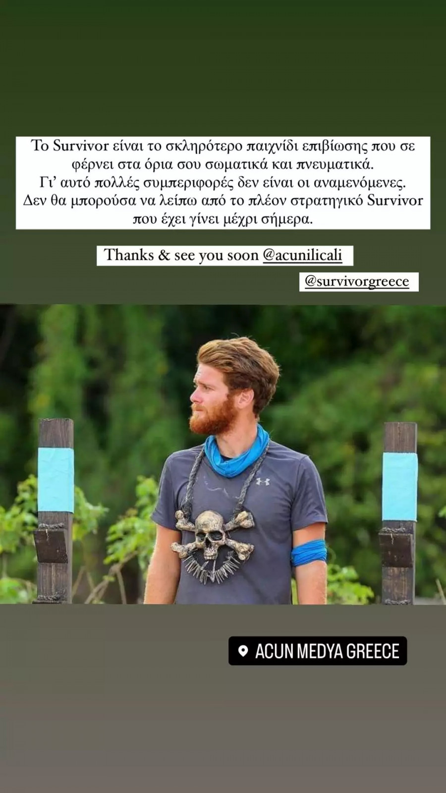 Υπενθυμίζεται πως ο ίδιος δεν μπήκε από την αρχή στο Survivor, εξαιτίας ενός προβλήματος υγείας που αντιμετώπισε.