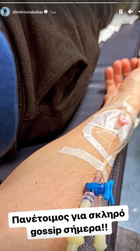Ο Δημήτρης Μακαλιάς βρίσκεται στο νοσοκομείο, όπως ο ίδιος έκανε γνωστό στα social media. Με μια φωτογραφία του μέσα από το νοσοκομείο, ο Δημήτρης Μακαλιάς έδειξε σε όσους τον ακολουθούν στο Instagram, το χέρι του με τον ορό, χωρίς όμως να δίνει λεπτομέρειες για την κατάσταση της υγείας του.