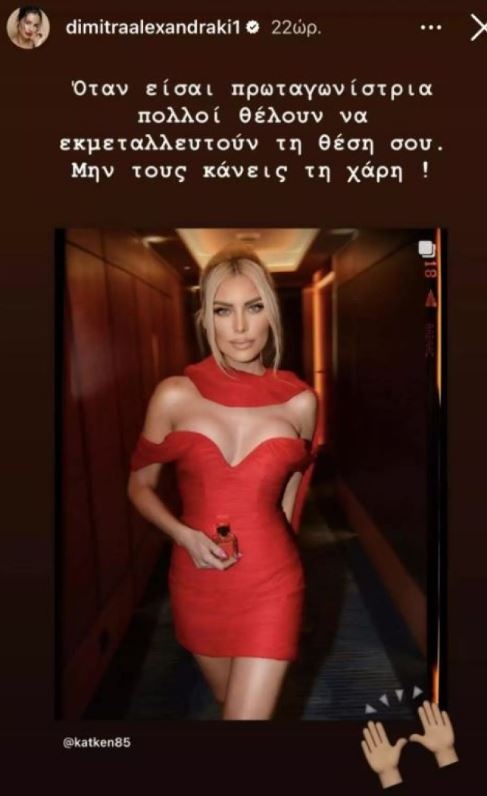 «Όταν είσαι πρωταγωνίστρια, πολλοί θέλουν να εκμεταλλευτούν τη θέση σου. Μη τους κάνεις τη χάρη!» έγραψε η Δήμητρα Αλεξανδράκη πάνω από μια φωτογραφία της Κατερίνας Καινούργιου.