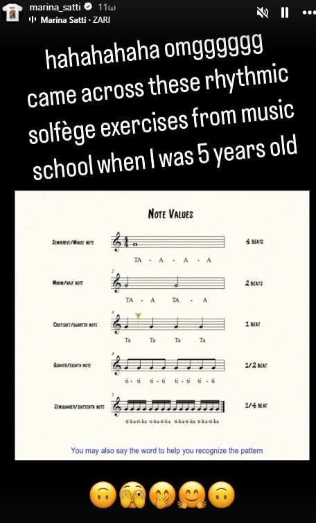 Η τραγουδίστρια ανέβασε την παρτιτούρα από τα μαθήματα θεωρίας μουσικής που έκανε όταν ήταν μικρή και μάθαινε το ρυθμικό σολφέζ.