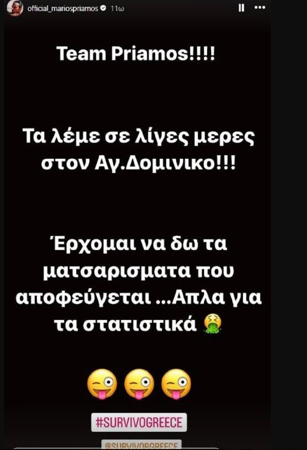 Ο παίκτης έγραψε: «Team Priamos. Τα λέμε σε λίγες μέρες στον Άγιο Δομίνικο. Έρχομαι να δω τα ματσαρίσματα που αποφεύγετε... Απλά για τα στατιστικά», πρόσθεσε.