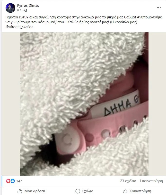 Πύρρος Δήμας: Ξανά πατέρας σε ένα υγιέστατο κοριτσάκι - Η ανάρτηση του