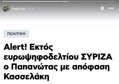 Φραγκολιάς: Η αντίδρασή του μετά την αποπομπή του Δημήτρη Παπανώτα από το ευρωψηφοδέλτιο του ΣΥΡΙΖΑ