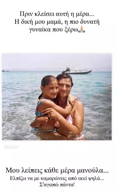 Με αφορμή τη γιορτή της Μητέρας η ίδια έγραψε: «Πριν κλείσει αυτή η μέρα… Η δική μου μαμά, η πιο δυνατή γυναίκα που ξέρω. Μου λείπεις κάθε μέρα μανούλα. Ελπίζω να με καμαρώνει από εκεί ψηλά. Σε αγαπώ πάντα».
