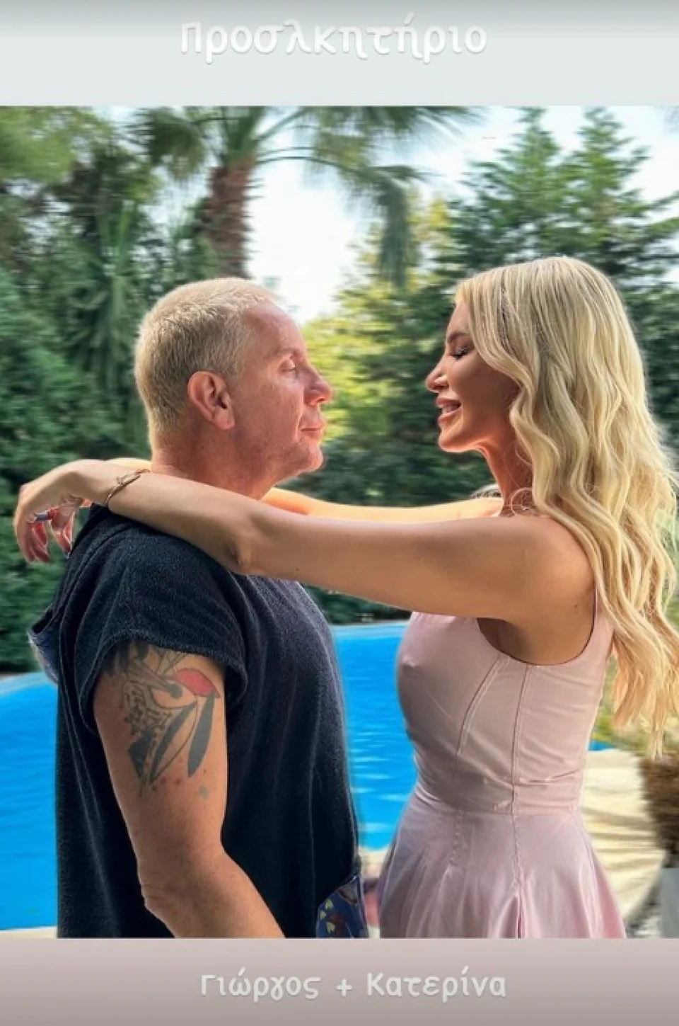 Πιο συγκεκριμένα, ο τραγουδιστής αναδημοσίευσε το ίδιο στιγμιότυπο στο Instagram προφίλ του, γράφοντας με χιούμορ: «Προσκλητήριο, Γιώργος και Κατερίνα».