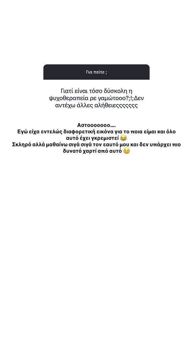 Η πρώην παίκτρια του GNTM, που είναι ιδιαίτερα ενεργή στα social media και καθημερινά δημοσιεύει φωτογραφίες και βίντεο από την ημέρα της, αυτή τη φορά ζήτησε από τους followers της να της κάνουν ερωτήσεις, για να τις απαντήσει η ίδια στη συνέχεια.