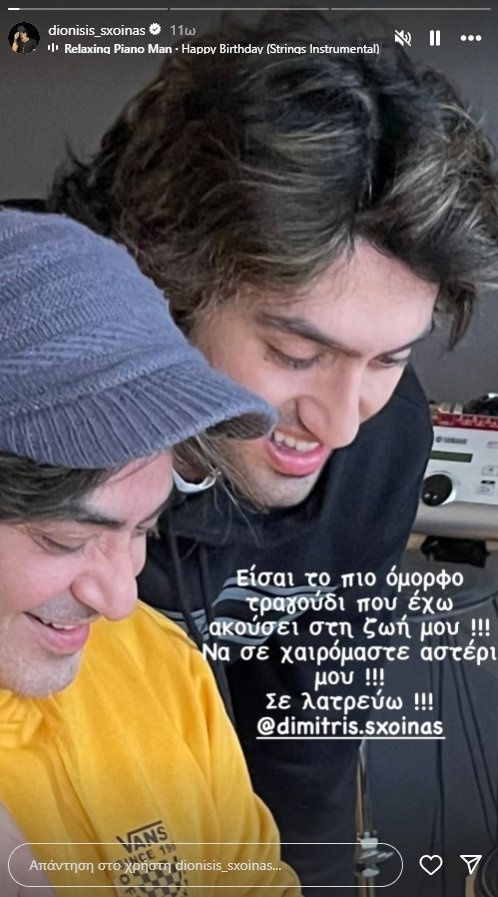 «Είσαι το πιο όμορφο τραγούδι που έχω ακούσει στη ζωή μου. Να σε χαιρόμαστε αστέρι μου. Σε λατρεύω», έγραψε ο Διονύσης Σχοινάς για τα γενέθλια του γιου του, Δημήτρη.
