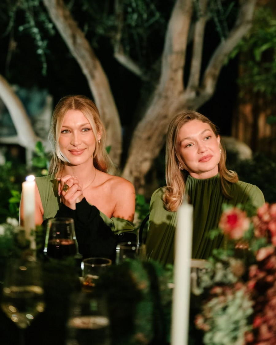 Οι Τζίτζι και Μπέλα υιοθέτησαν ανοιξιάτικους τόνους γης με κομψές πράσινες δημιουργίες. Η 29χρονη Μπέλα φόρεσε ένα φόρεμα halter με πολυεπίπεδη, φουσκωτή φούστα, ενώ η 30χρονη Τζίτζι επέλεξε ένα μακρυμάνικο wrap φόρεμα.