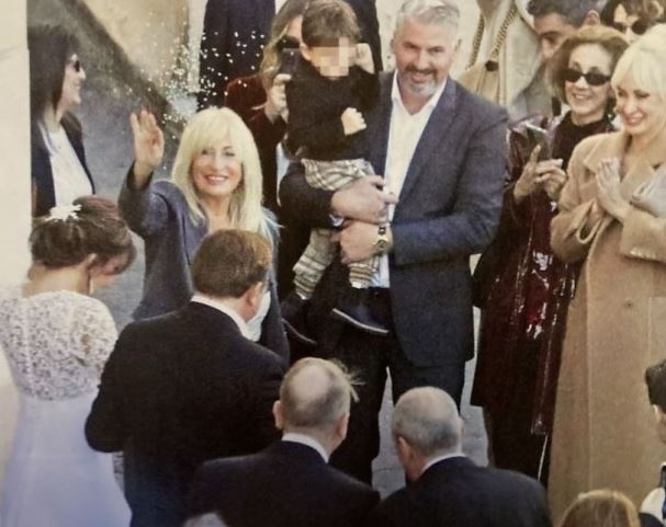 Σε φωτογραφία του περιοδικού ΟΚ! φαίνεται η μαμά της νύφης, Ελένη Ματσούκα, να πετά ρύζι στους νεόνυμφους, ενώ δίπλα βρίσκεται και η αδελφή της, Μαρία Ματσούκα, με τον σύζυγό της, Θέμη Γιαννίτσα και τον 2,5 ετών γιο τους.