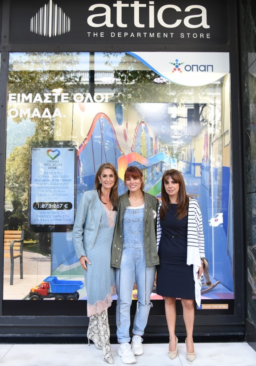Η καρδιά της «Ομάδα Προσφοράς ΟΠΑΠ» χτυπάει παντού. Η βιτρίνα του attica στο City Link ντύθηκε στα χρώματα της ομάδας, η οποία παίζει για να συμβάλει στη συνέχιση της ανακαίνισης των παιδιατρικών νοσοκομείων «Η Αγία Σοφία» και «Παναγιώτης & Αγλαΐα Κυριακού».