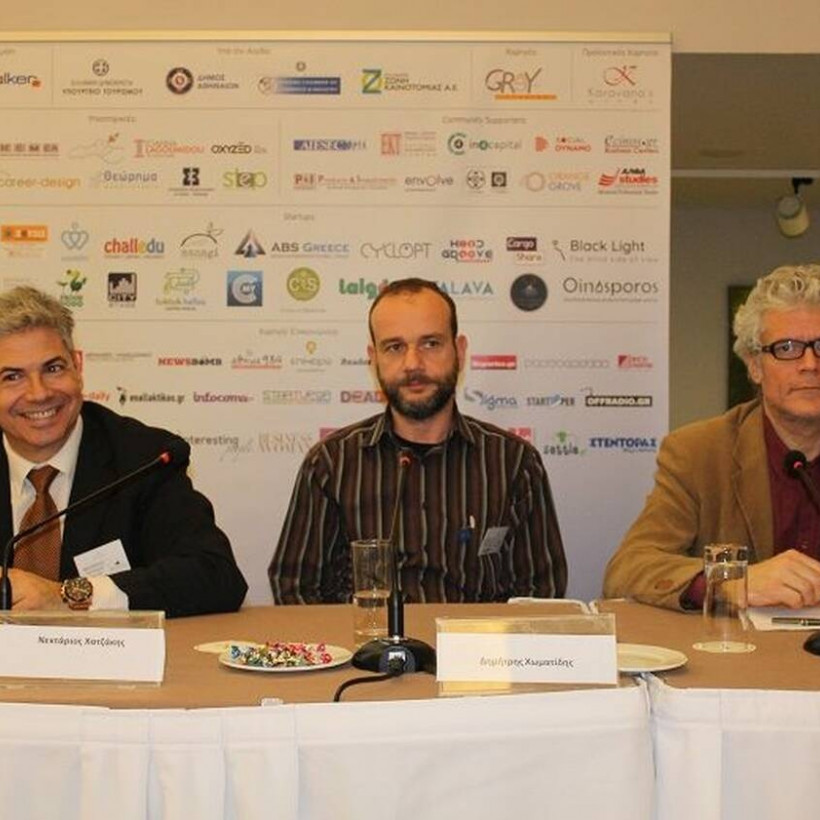 Στον χαιρετισμό του ο κ. Νικόλαος Α. Μακρόπουλος, εκπρόσωπος του δημάρχου Αθηναίων, αντιδήμαρχος Ανάπτυξης Επιχειρηματικότητας & Επενδύσεων, τόνισε ότι η νέα επιχειρηματικότητα αποτελεί το θεμέλιο για το μέλλον, καθώς το μοντέλο ανάπτυξης αλλάζει.