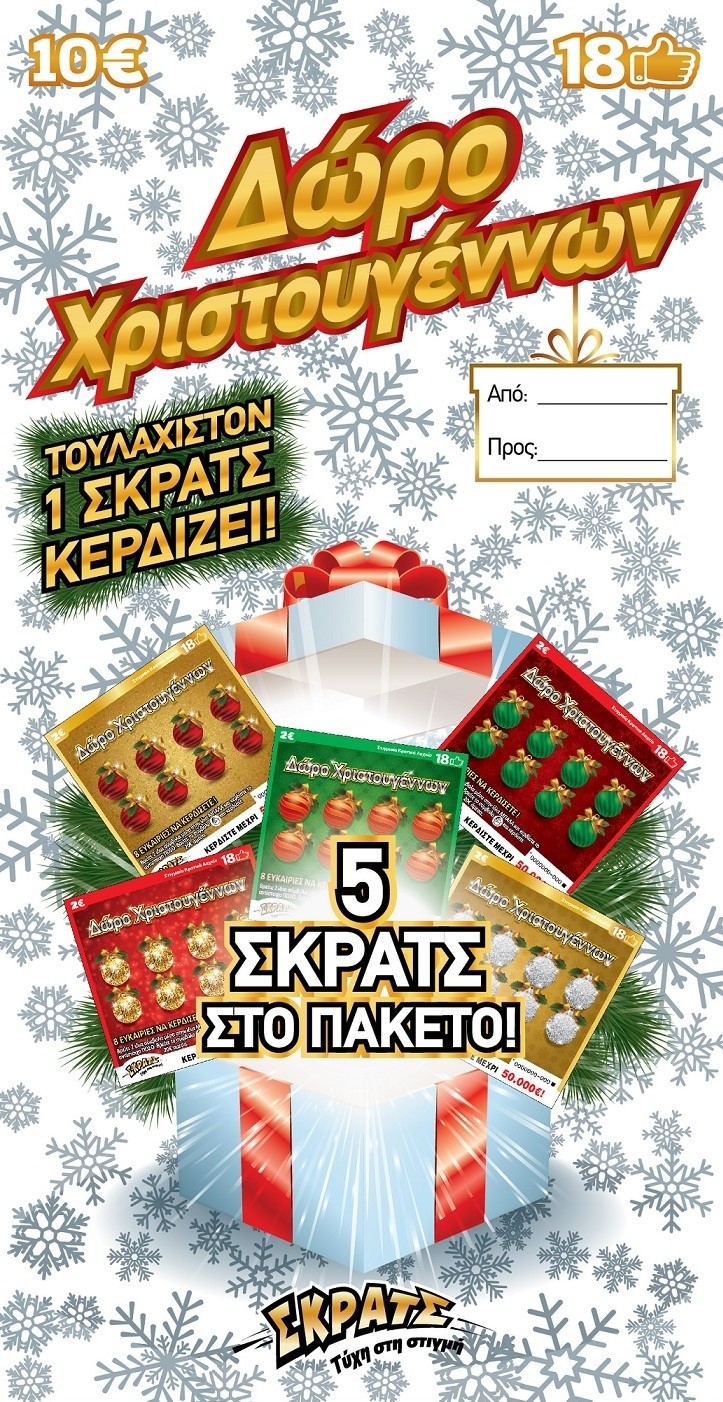 Με το χαρακτηριστικό όνομα, το εορταστικό παιχνίδι του ΣΚΡΑΤΣ αποτελεί ένα τυχερό, αλλά και οικονομικό «Δώρο Χριστουγέννων». Ειδική συσκευασία, αξίας δέκα ευρώ, περιλαμβάνει πέντε ΣΚΡΑΤΣ, από τα οποία τουλάχιστον ένα κερδίζει μέχρι και 50.000 ευρώ.