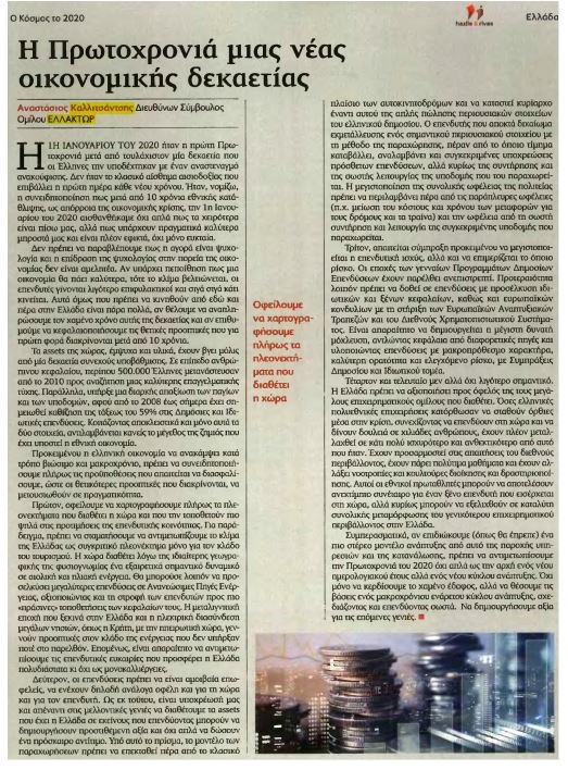 Καλλιτσάντσης-ΕΛΛΑΚΤΩΡ: Η Πρωτοχρονιά μιας νέας οικονομικής δεκαετίας