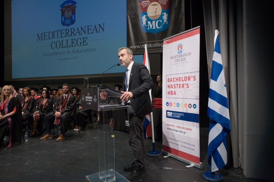 «Σήμερα, στην εποχή της παγκοσμιοποίησης, στην αυγή της 4ης βιομηχανικής επανάστασης, έχει αξία η συνεργασία με μεγάλα ευρωπαϊκά Πανεπιστήμια, η διασύνδεση με ιδρύματα εγνωσμένου κύρους, η επένδυση στο ανθρώπινο κεφάλαιο, στους καθηγητές ενώ έχει ιδιαίτερη σημασία και η προσωπική – ατομική περίπτωση του κάθε σπουδαστή…Όλα αυτά, το Mediterranean College τα έχει στην προμετωπίδα του… Πίσω από κάθε θεσμό, Εκπαιδευτικό Ίδρυμα, Κολλέγιο – πίσω από οτιδήποτε επιτυχημένο κρύβονται άνθρωποι με μεράκι, που αγαπούν αυτό που κάνουν και έχουν αυθεντικό ενδιαφέρον για τον άνθρωπο». Χαιρετισμό στους νέους απόφοιτους της Τάξης του 2019 στη Θεσσαλονίκη απηύθυνε ο Δήμαρχος της πόλης, κ. Κωνσταντίνος Ζέρβας, ενθαρρύνοντας τους να «εισέλθουν στη νέα φάση της ζωής τους με αισιοδοξία».