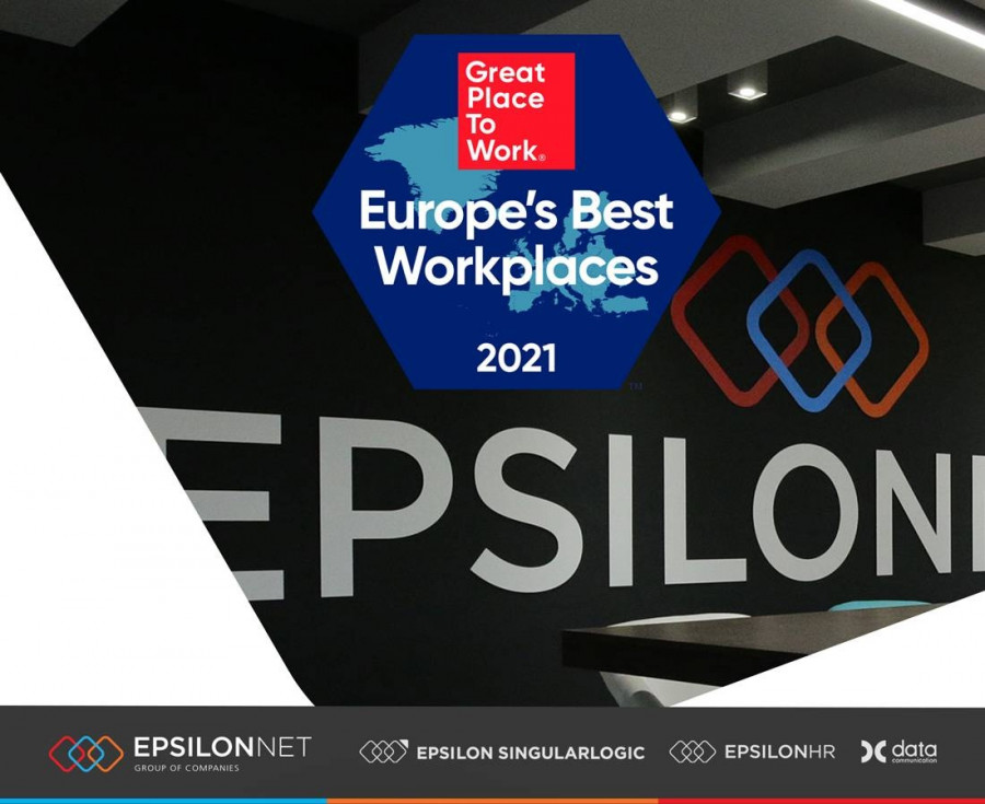 Η Epsilon Net διακρίθηκε, για δεύτερη φορά στην ιστορία της, ανάμεσα στις κορυφαίες εταιρίες με το καλύτερο εργασιακό περιβάλλον στην Ευρώπη. Με σύνθημα το #apartbutstilltogether, η Epsilon Net κατέκτησε την 31η θέση στην κατηγορία των μεσαίων επιχειρήσεων σε όλη την Ευρώπη. Η βράβευση πραγματοποιήθηκε σε μια λαμπρή τελετή που διοργανώθηκε από τον διεθνή οργανισμό Great Place to Work και διεξήχθη την Τρίτη 21 Σεπτεμβρίου 2021.