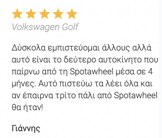 Με την αγορά αυτοκινήτου να αφορά τους πάντες, ανεξαρτήτως φύλου, ηλικίας και οικονομικού background, μπορεί κανείς να περιηγηθεί στο spotawheel.gr ώστε να βρει το αυτοκίνητο που #tou_aksizei, καθώς και να διαβάσει τα πολλά και αληθινά testimonials των πελατών της Spotawheel: