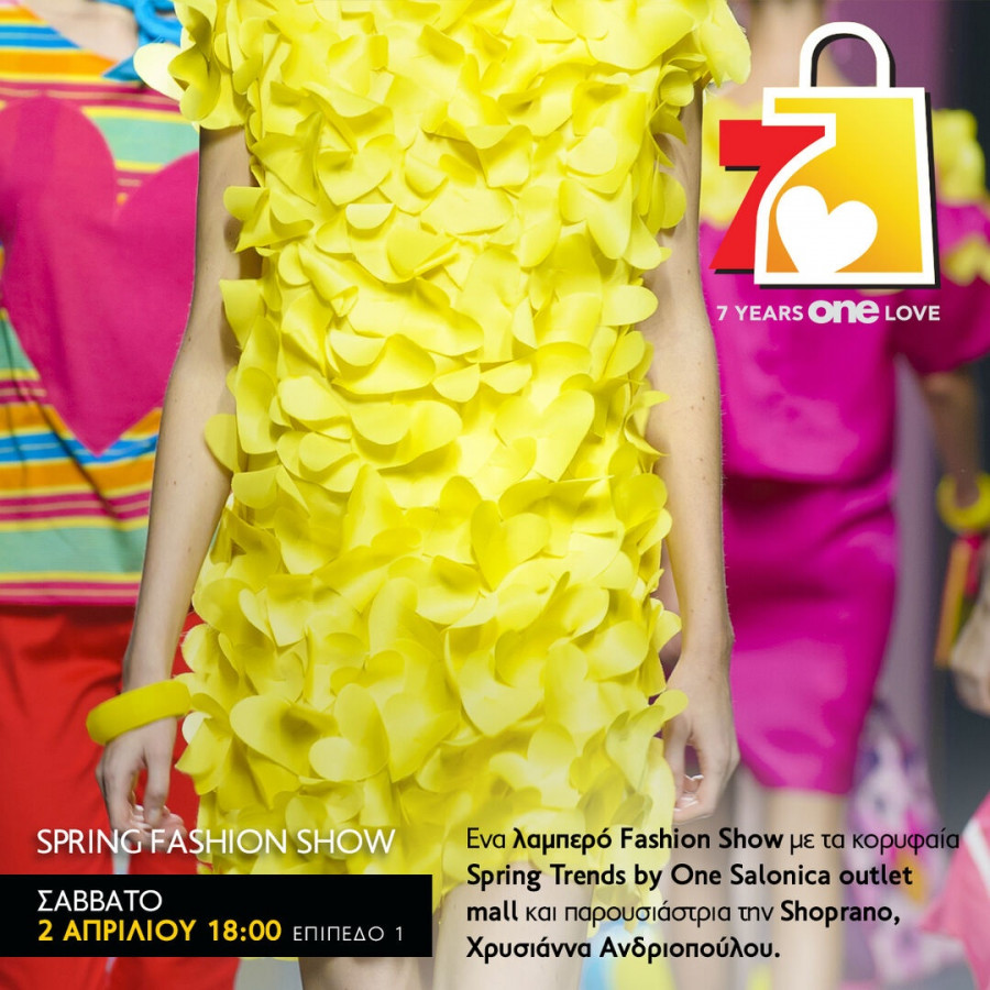 Σάββατο 2 Απριλίου στις 18:00: Το πιο λαμπερό Fashion Show, με τα κορυφαία Spring Trends by One Salonica outlet mall, θα μας εμπνεύσει για να δημιουργήσουμε τα πιο stylish σύνολα της σεζόν. Την παρουσίαση του Fashion Show θα αναλάβει η top fashion influencer, Shoprano - Χρυσιάννα Ανδριοπούλου, ενώ η προετοιμασία των μοντέλων, το styling, hair & make up θα πραγματοποιηθεί από την ομάδα καθηγητών και σπουδαστών των ΙΕΚ Δέλτα 360ο.
