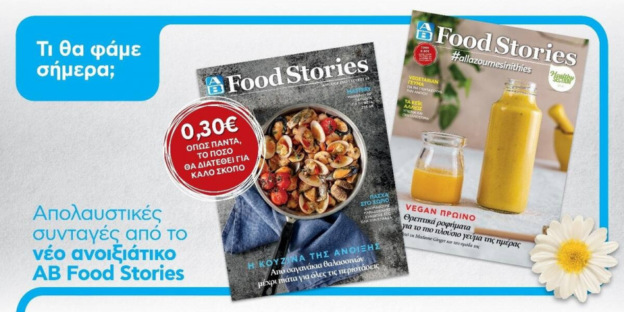 Για ακόμη περισσότερη έμπνευση αξίζει να προμηθευτούμε το νέο ανοιξιάτικο τεύχος του περιοδικού ΑΒ Food Stories για να βρούμε περισσότερες συνταγές, μοντέρνα πιάτα αλλά και χρήσιμα tips για τις δημιουργίες μας, μαζί με πλούσιο περιεχόμενο και πασχαλινά θέματα για την κουζίνα μας και όχι μόνο! Αγοράζοντας εξάλλου το ΑΒ Food Stories, συνεισφέρουμε μαζί στην κάλυψη των αναγκών του Ινστιτούτου Prolepsis και τοπικών φορέων (ιδρύματα, ΜΚΟ, κοινωνικά παντοπωλεία δήμων και σχολεία) που βοηθούν χιλιάδες συνανθρώπους μας που έχουν ανάγκη.